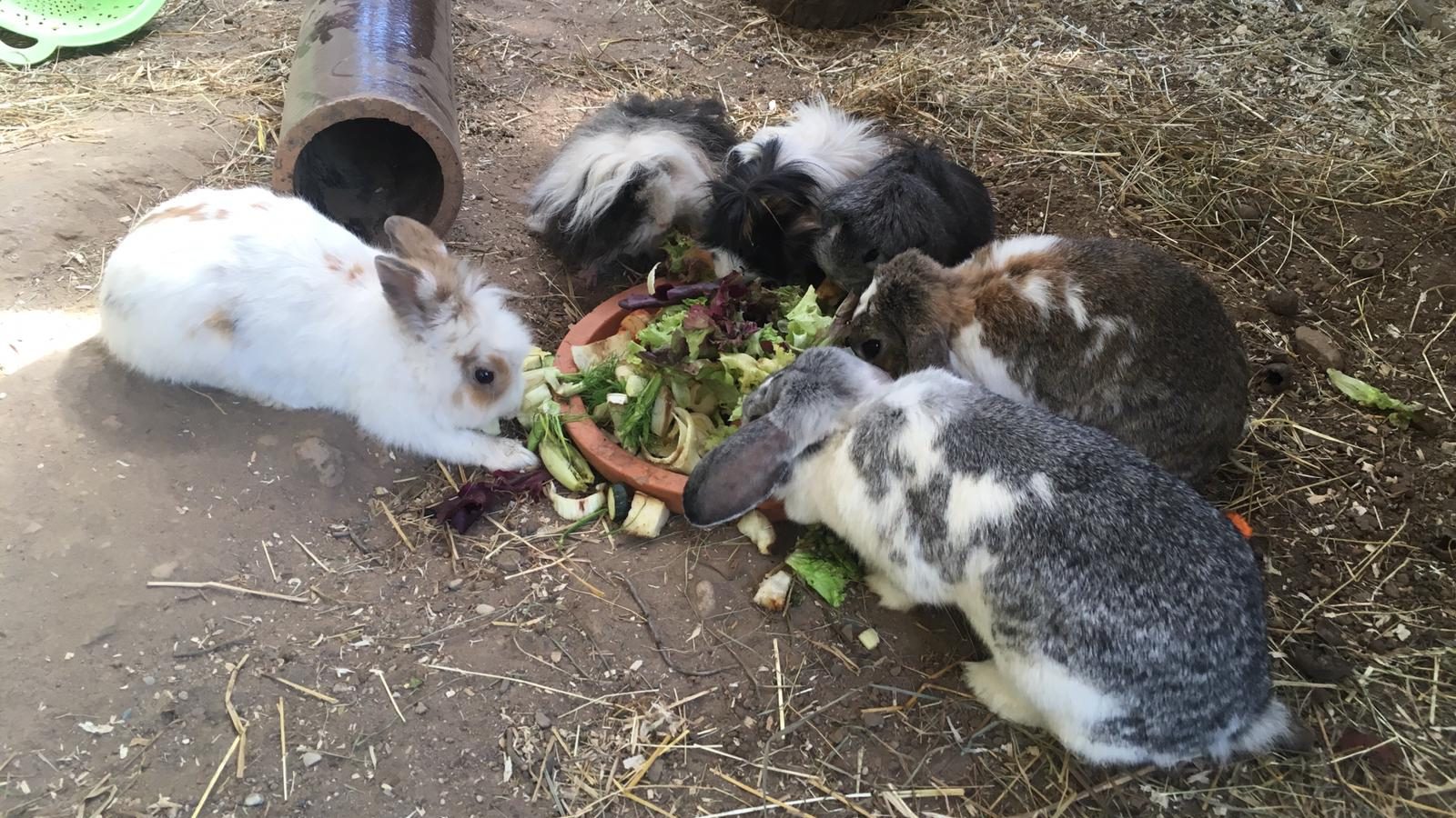 Gemütliche Essensrunde im Kaninchenstall